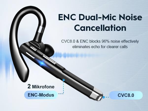 [Dual Microphone Noise Reduction] Experience superior call quality with the noise-canceling earpiece featuring enc dual-mic noise cancellation technology. With CVC8.0 & ENC, it effectively blocks 96% of noise and eliminates echo, ensuring crystal-clear calls even in noisy environments.